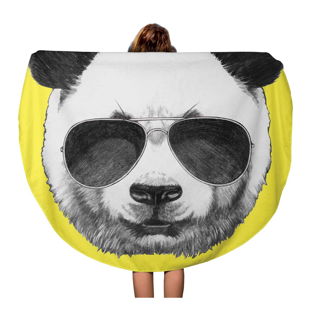 Poglip 60 Inch Round Beach Towel Blanket Yellow Portrait Of Panda Sunglasses Hand Baby Cool Travel Circle Circular Towels Mat Tapestry Beach Throw Walmart Canada
