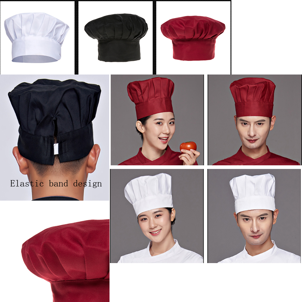 Chef Hat Unisex Adult Adjustable Elastic Baker Kitchen Uniform Cap For Baking Party Cooking Restaurant Cool Vent Chef Tall Hat Black Or White Clothing Food Service