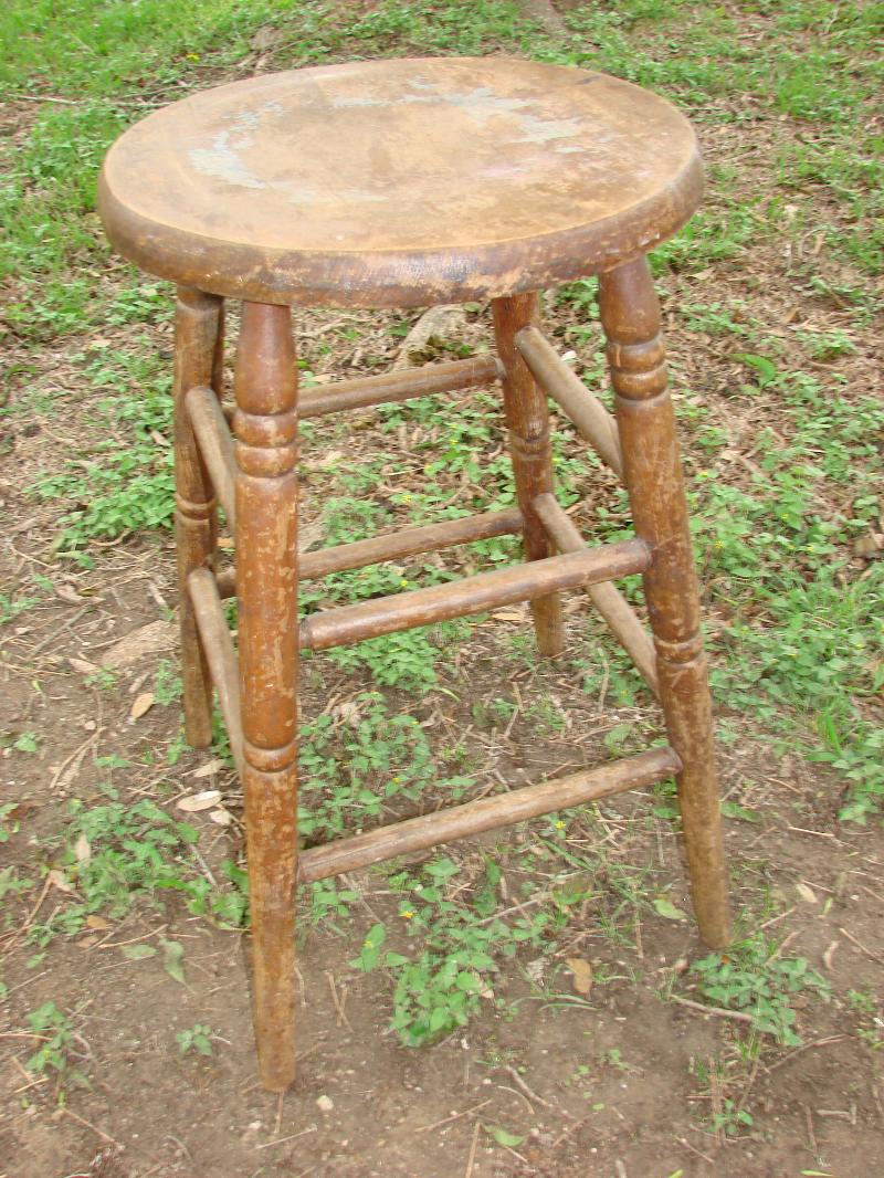 Old wooden stool. My kids just love to drag it around the house. You may have or be able to get rather cheaply some outdoor furniture in the form of little tables or even large stools. Wonderful Antique Leather-Coved Velvet Jewelry Box w/ Engraved Corners.