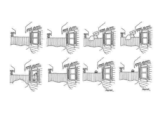 Shoveling Snow Series Of Eight Drawings A Man Peers Over A Fence Shovel New Yorker Cartoon Premium Giclee Print Jack Ziegler Art Com