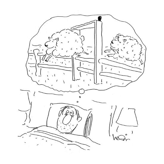 Sleepless Man Counts Sheep Jumping Over Fence And Having To Go Through Met Cartoon Premium Giclee Print Arnie Levin Art Com