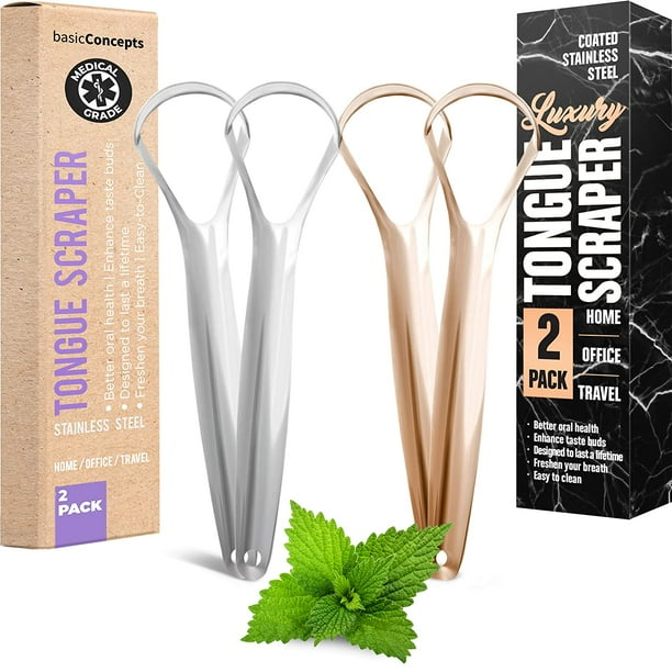 Amazon Com Tongue Scraper 2 Pack Reduce Bad Breath Medical Grade Stainless Steel Tongue Cleaners 100 Bpa Free Metal Tongue Scrapers Fresher Breath In Seconds Beauty