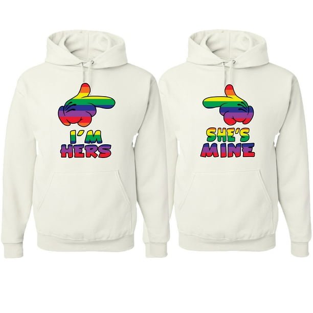 Wild Bobby I M Hers She S Mine Gay Lgbt Rainbow Cartoon His And Hers Matching Couples Sweaters Hoodie Set White Mens S Womens S Walmart Com Walmart Com