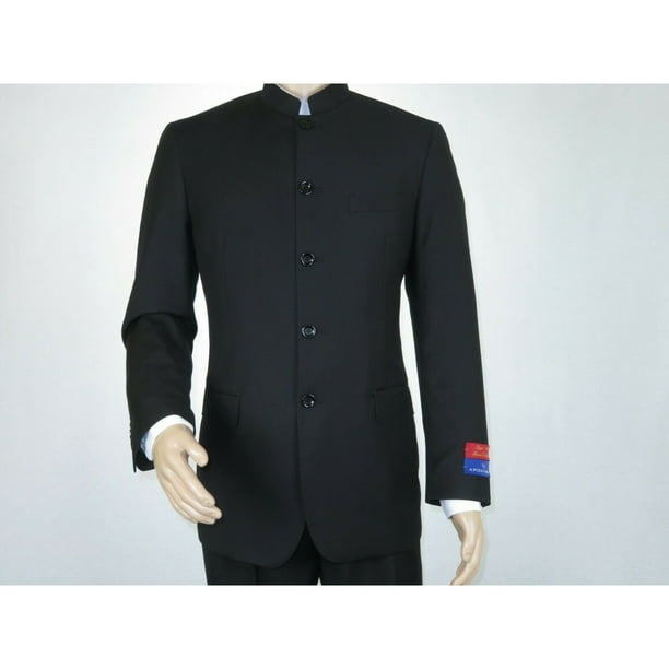 Apollo King Men Apollo King Banded Collarless Suit Mandarin 5 Button Wide Leg M5 1 Black New Walmart Com Walmart Com