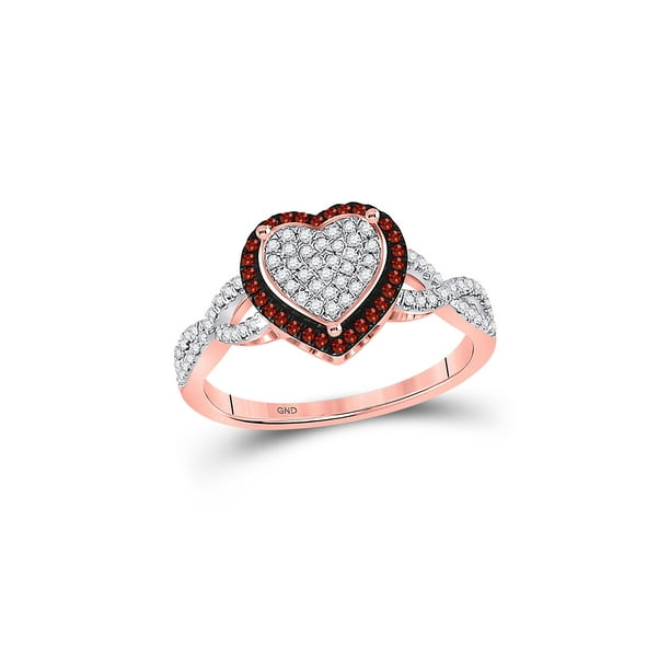 Gemapex 10kt Rose Gold Womens Round Red Color Enhanced Diamond Heart Ring 1 8 Cttw Walmart Com Walmart Com