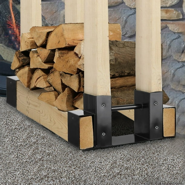 Sunyuan Firewood Bracket Log Rack Outdoor Wood Storage Fireplace Lumber Pile Holder Stacker Kit Diy Heavy Duty Steel Fire Pit Accessory Adjustable To Any Length And Height Screw Included Black Walmart Com