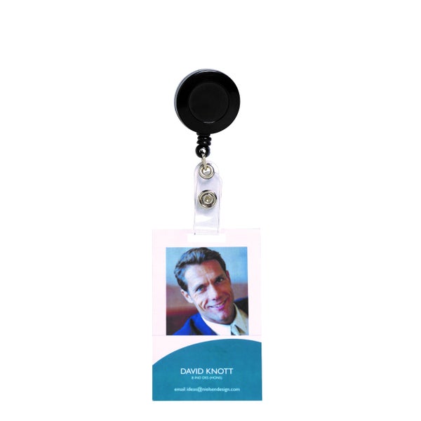 Rexel Retractable Small Cardholder With Strap Black Paper Plus
