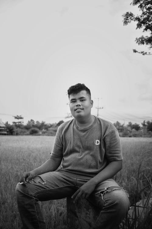 A Young Handsome Male Sitting On Chair And Posing Isolated On Stock Photo Picture And Royalty Free Image Image