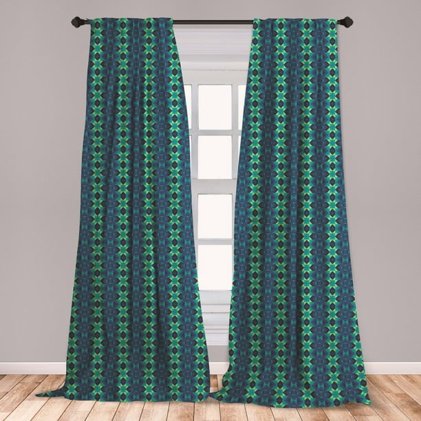 Blue And Green Curtains 2 Panels Set Symmetric Geometric Vertical Borders With Zig Zag Stripes Window Drapes For Living Room Bedroom Pale Green Dark Blue By Ambesonne Walmart Com Walmart Com