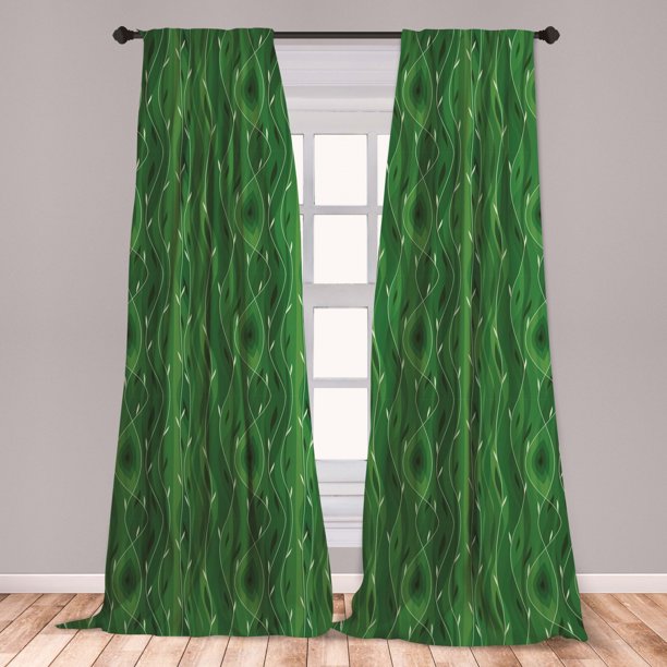 Green Curtains 2 Panels Set Retro Spring Freshness Themed Abstract Leaf Design Vertical Wavy Twigs Window Drapes For Living Room Bedroom Fern Green Pale Green By Ambesonne Walmart Com Walmart Com