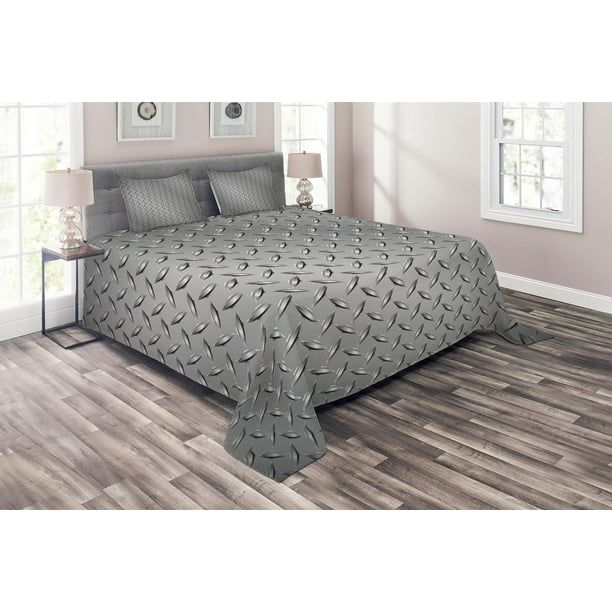 Grey Coverlet Set Wire Fence Design Netting Display With Diamond Plate Effects Chrome Kitsch Motif Print Decorative Quilted Bedspread Set With Pillow Shams Included Silver By Ambesonne Walmart Com Walmart Com