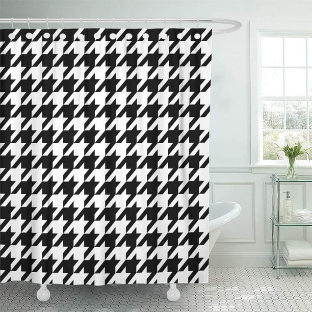 Amazon Com Lorvies Houndstooth Pattern Bathroom Set Polyester Fabric Shower Curtain 72 X 72 Inch With Bath Mats Rugs 15 7 X 23 6 Inch 12 Rings Home Kitchen