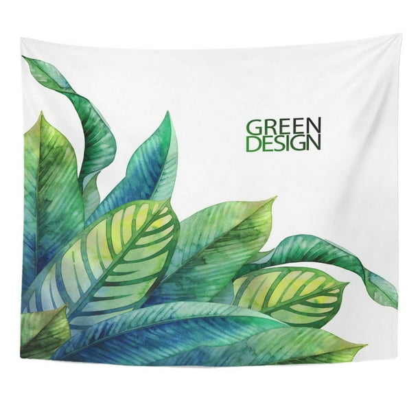 Zealgned Green Flower Watercolor Heliconia Leaves Placed In The Corner Design Hand Exotic Plants Paint Wall Art Hanging Tapestry Home Decor For Living Room Bedroom Dorm 51x60 Inch Walmart Com Walmart Com