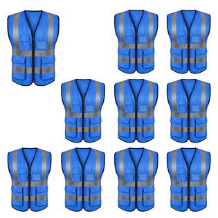 Gogo Multi Pockets High Visibility Zipper Front Safety Vest With Reflective Strips Uniform Vest Pack Of 10