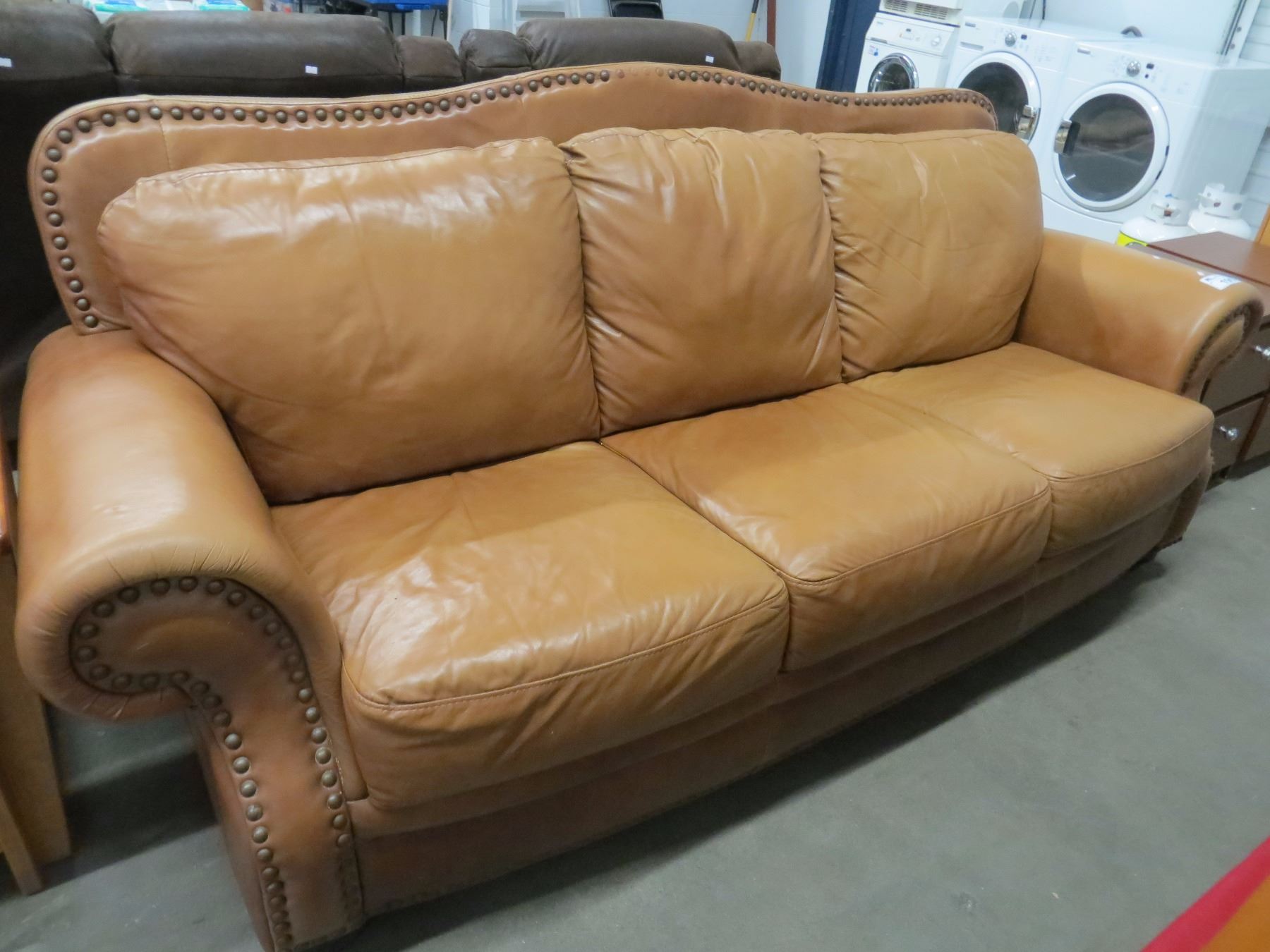 Sold Price Studded Leather Sofa July 4 01 10 00 Am Pdt