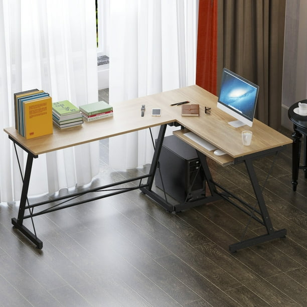 Large L Shaped Computer Desk Multifunctional Computer Table With Keyboard Corner Table Gaming Desk Office Writing Workstation Space Saving Beige Walmart Com Walmart Com